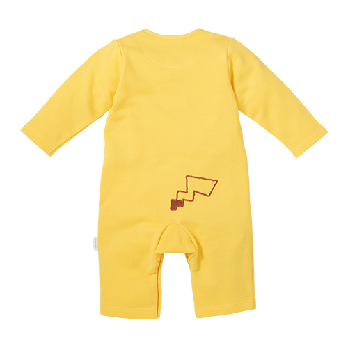 前身頃にはピカチュウの可愛らしい顔の刺繍、後身頃にはしっぽの刺繍も入っています。
