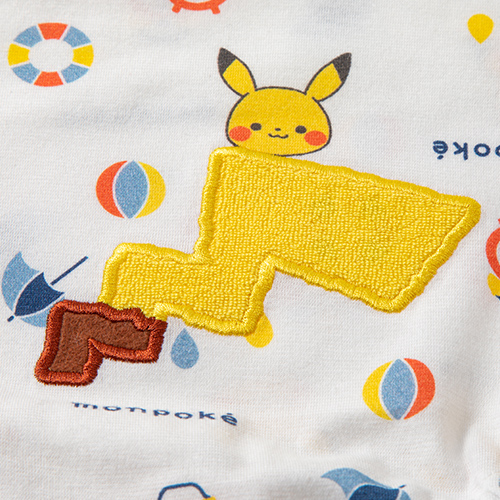 ピカチュウの総柄プリントで可愛らしく。後ろにもしっぽの刺繍入り。