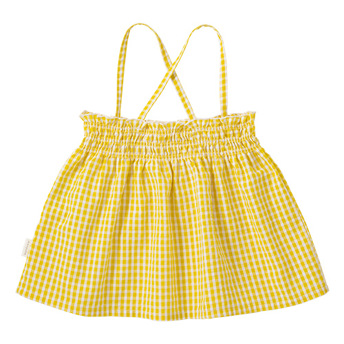 ギンガムチェック生地のキャミソールワンピースとネップ天竺の半袖ロンパースのセット。