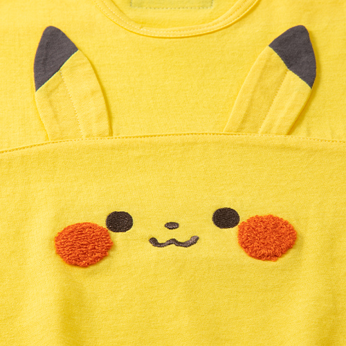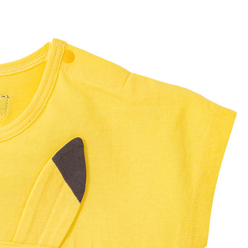 前身頃にピカチュウの顔や耳がポイントの半袖ロンパース。