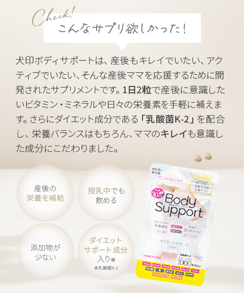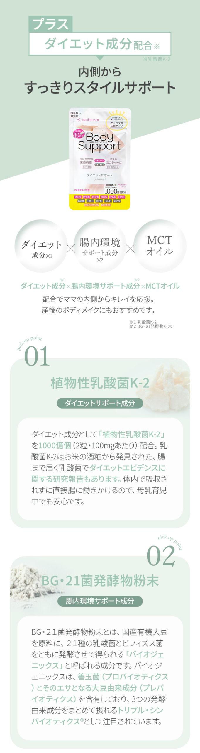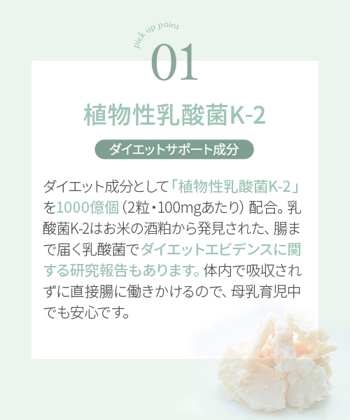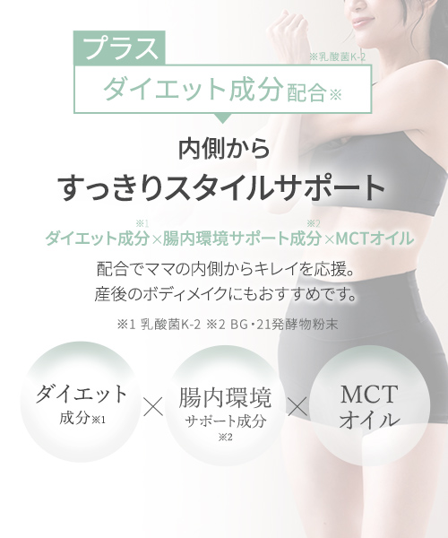 さらにダイエット成分である「乳酸菌K-2」を配合でママの内側からキレイを応援♪