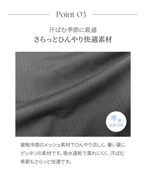 接触冷感素材で汗ばむ季節も快適に過ごせるインナーキャミソール。