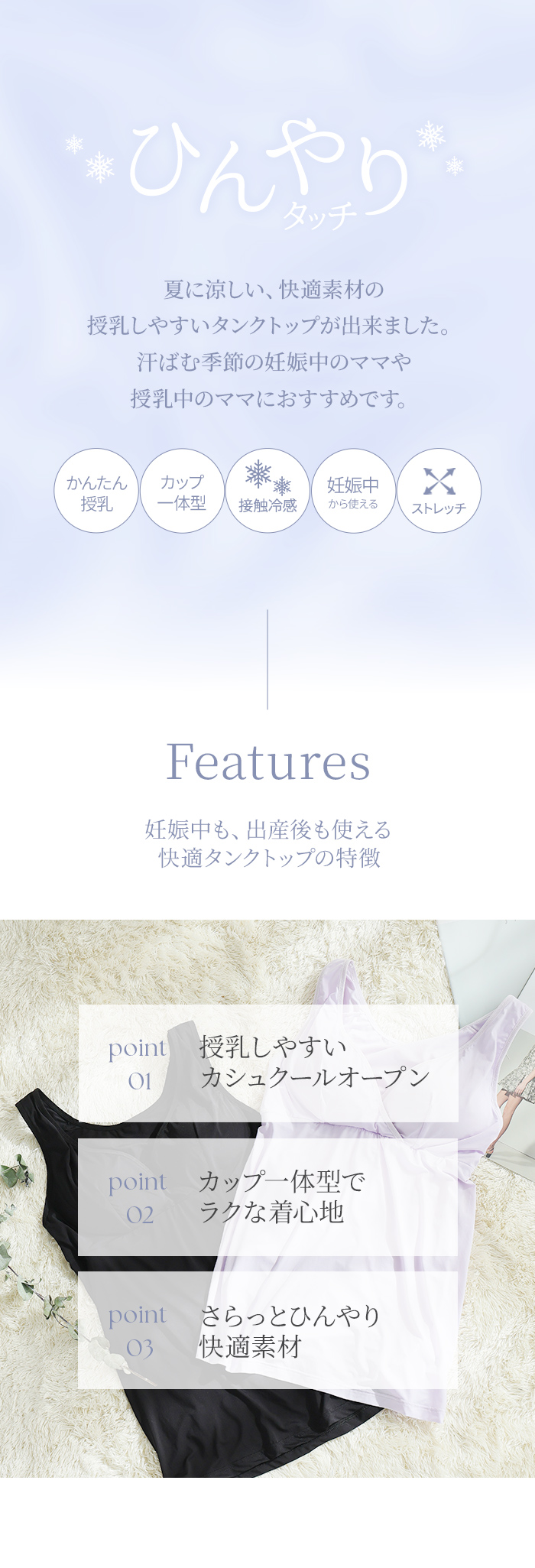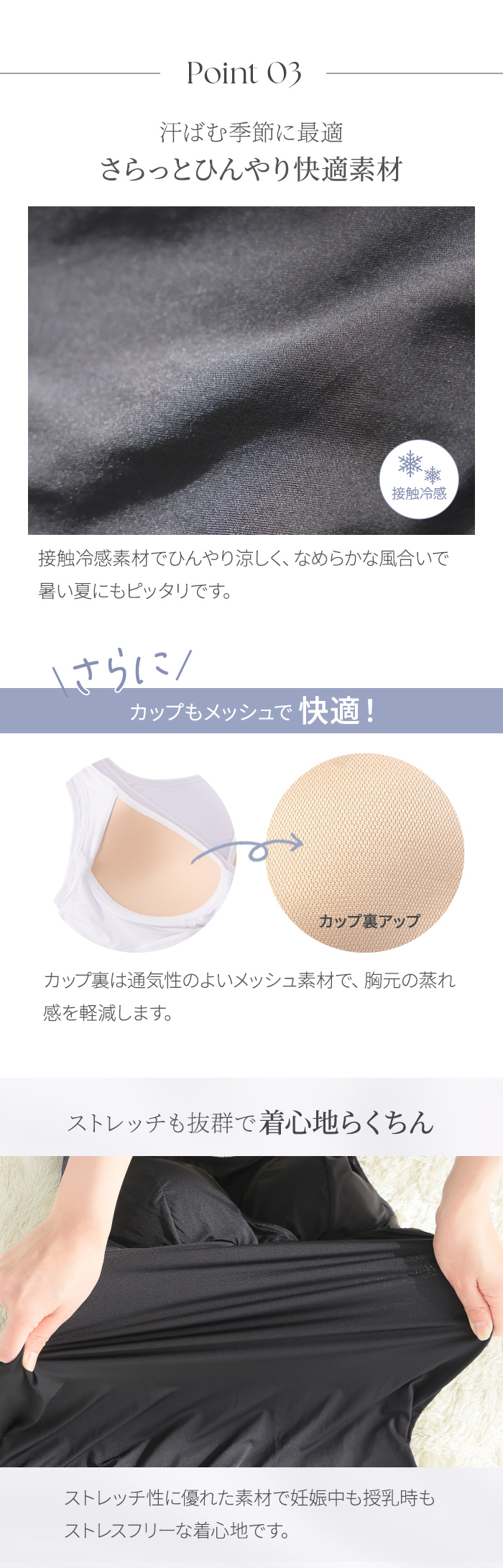 暑い時期も心地よく過ごしたいマタニティママや授乳中のママにおすすめです。