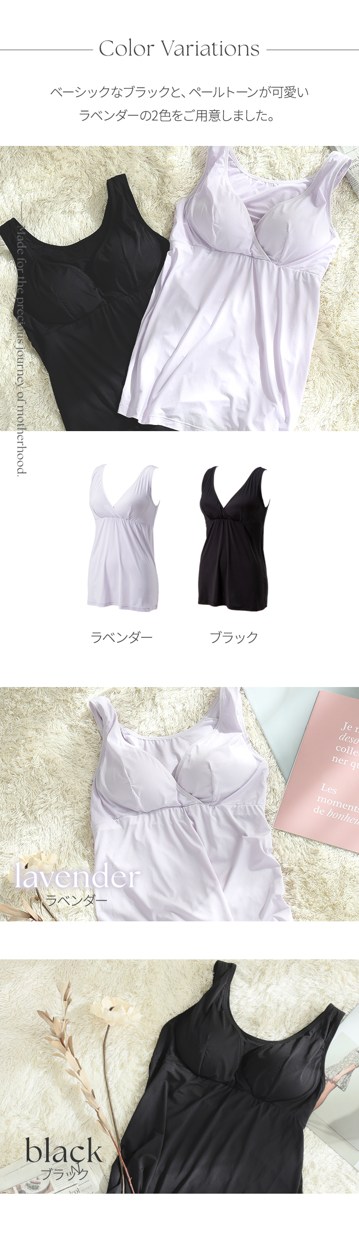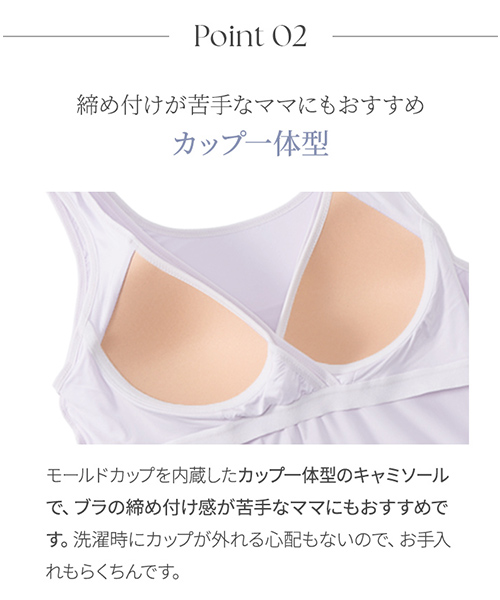 授乳しやすいカシュクールオープン仕様とカップ一体型デザインで、ラクな着心地。