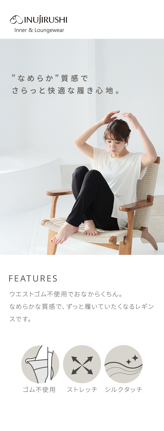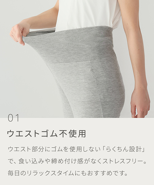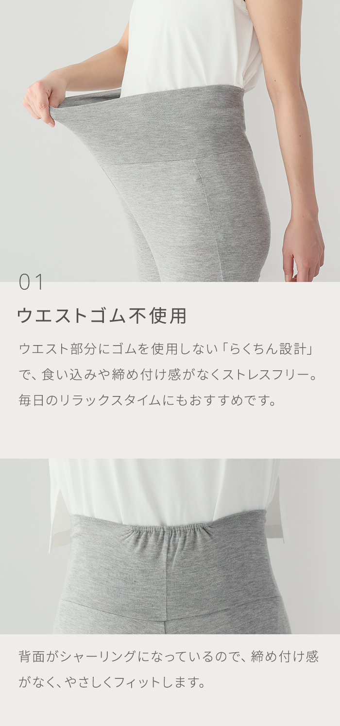 ウエストゴム不使用でおなかを締め付けず、ラクなはき心地。