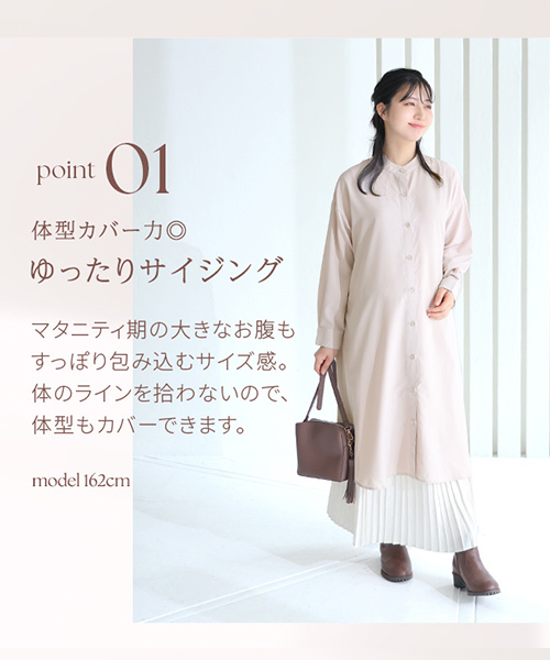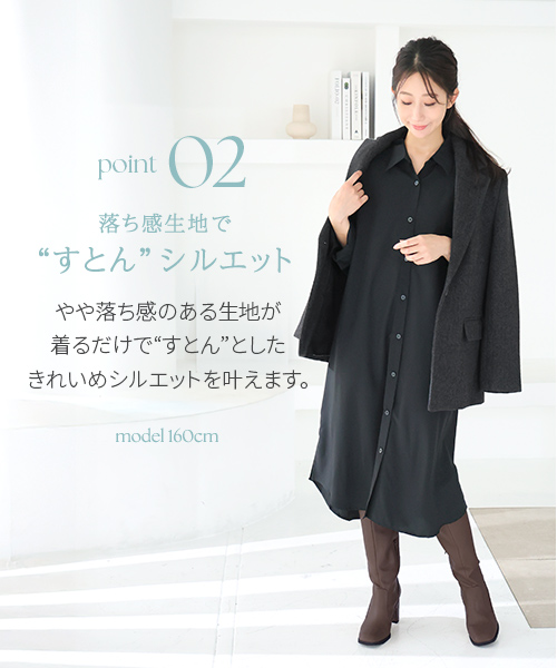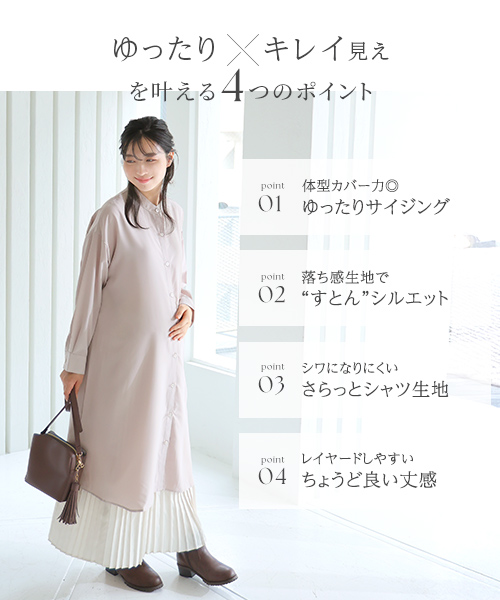 ゆったりしながらスッキリシルエットで体系カバーと細見えの両方を叶えます。