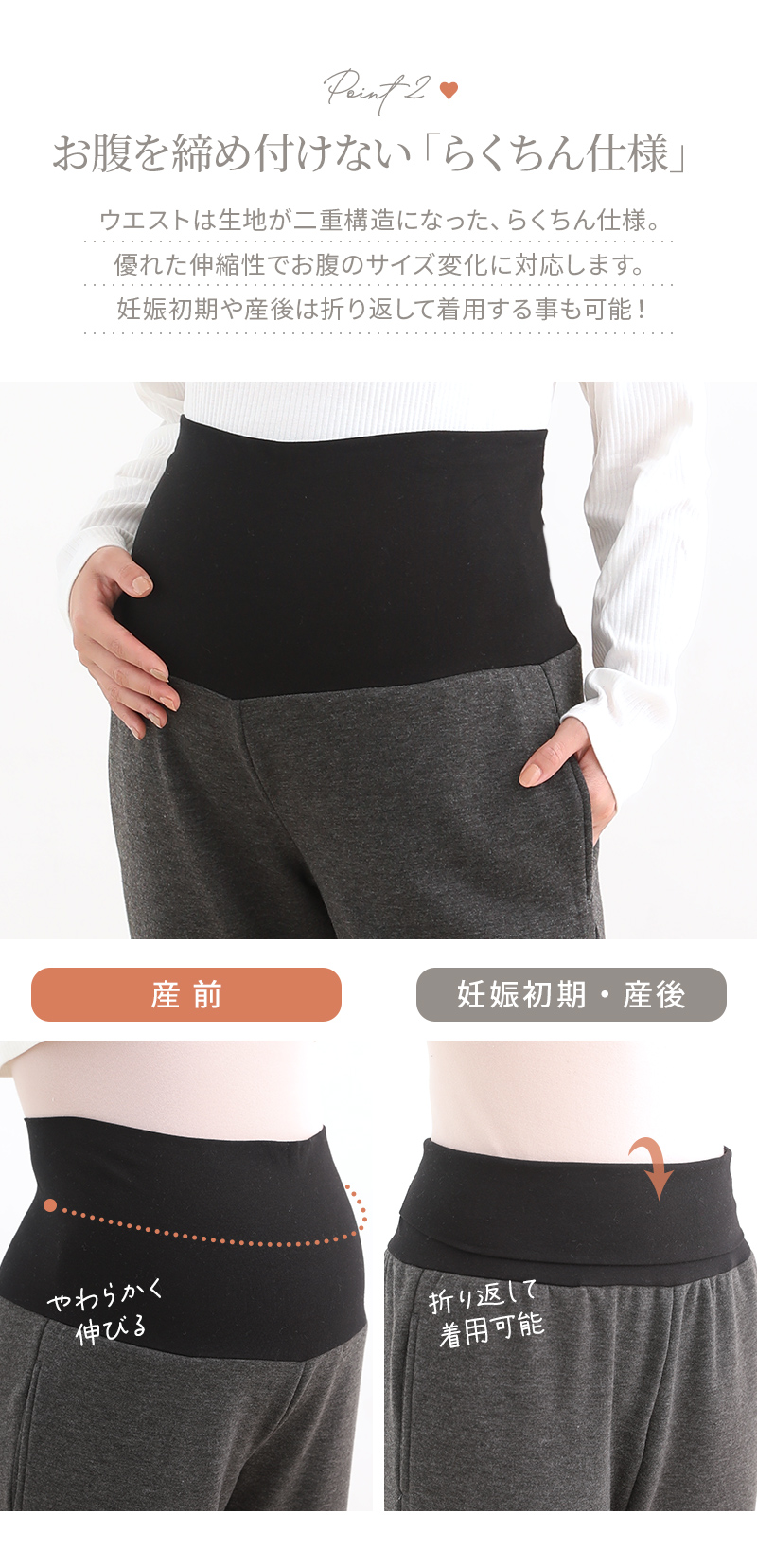 産前から産後もストレスフリーの着心地♪