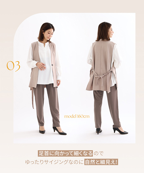 脇丈 90、股下 70、ウエスト 63、わたり幅 36、裾幅 15.5、前股ぐり 22、後股ぐり 35、ゴム上り 8