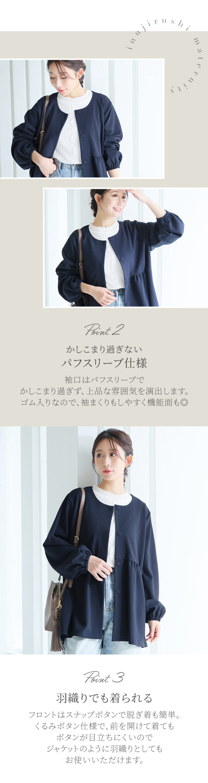 ペプラム前あきトップス
