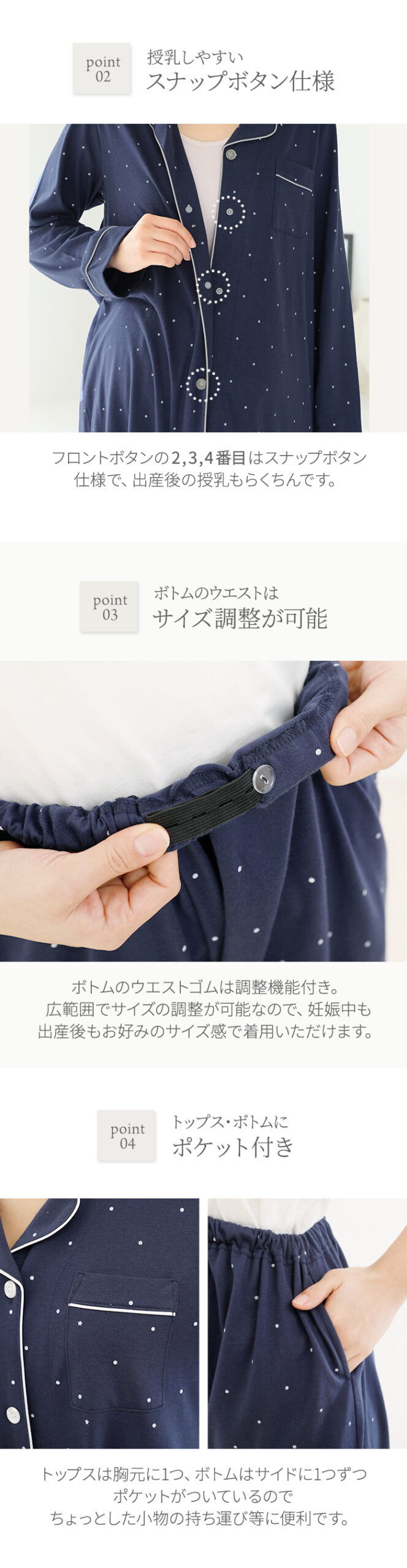 公開日: 2025年10月3日 ドット柄ロング丈マタニティパジャマ(産前・産後)フル解像度 (664 × 2560)