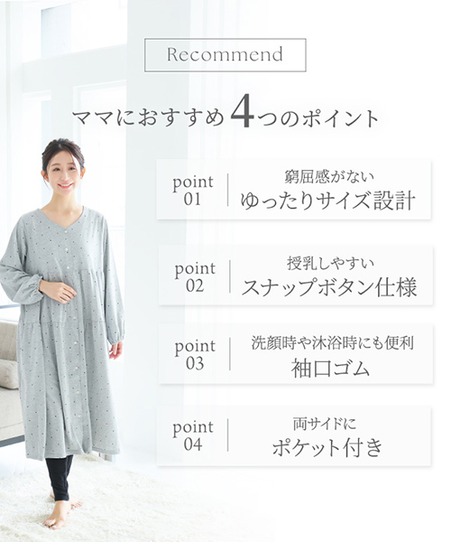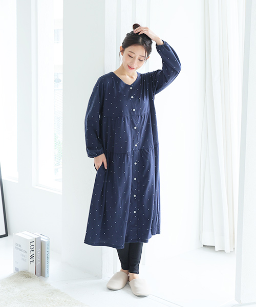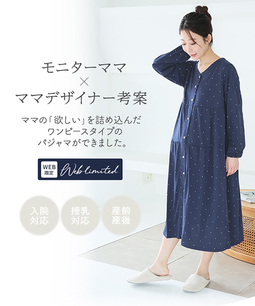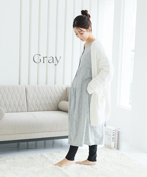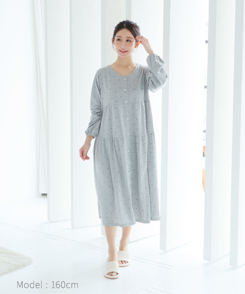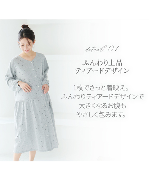 長袖ドット柄ティアードワンピース(産前・産後) Webプレミアム