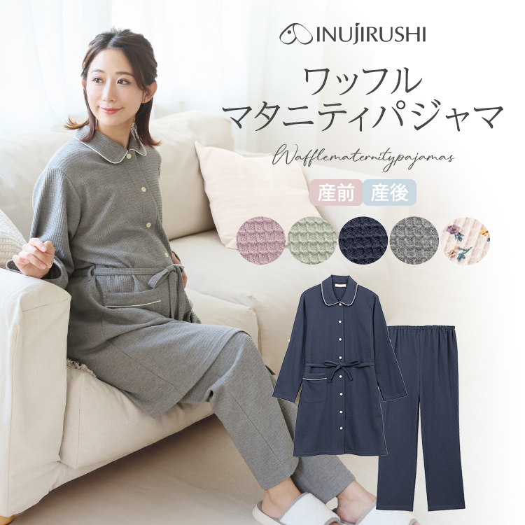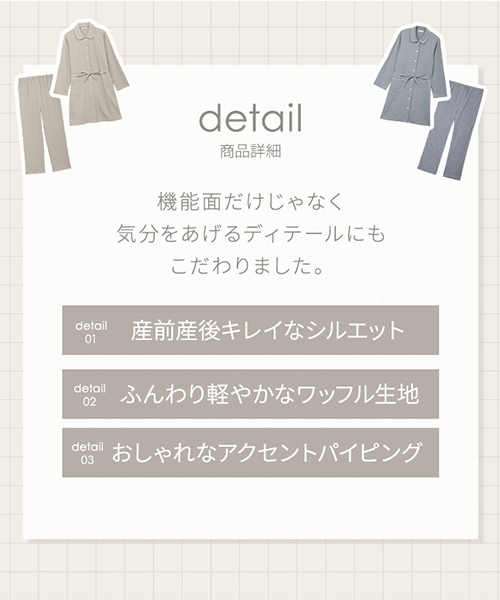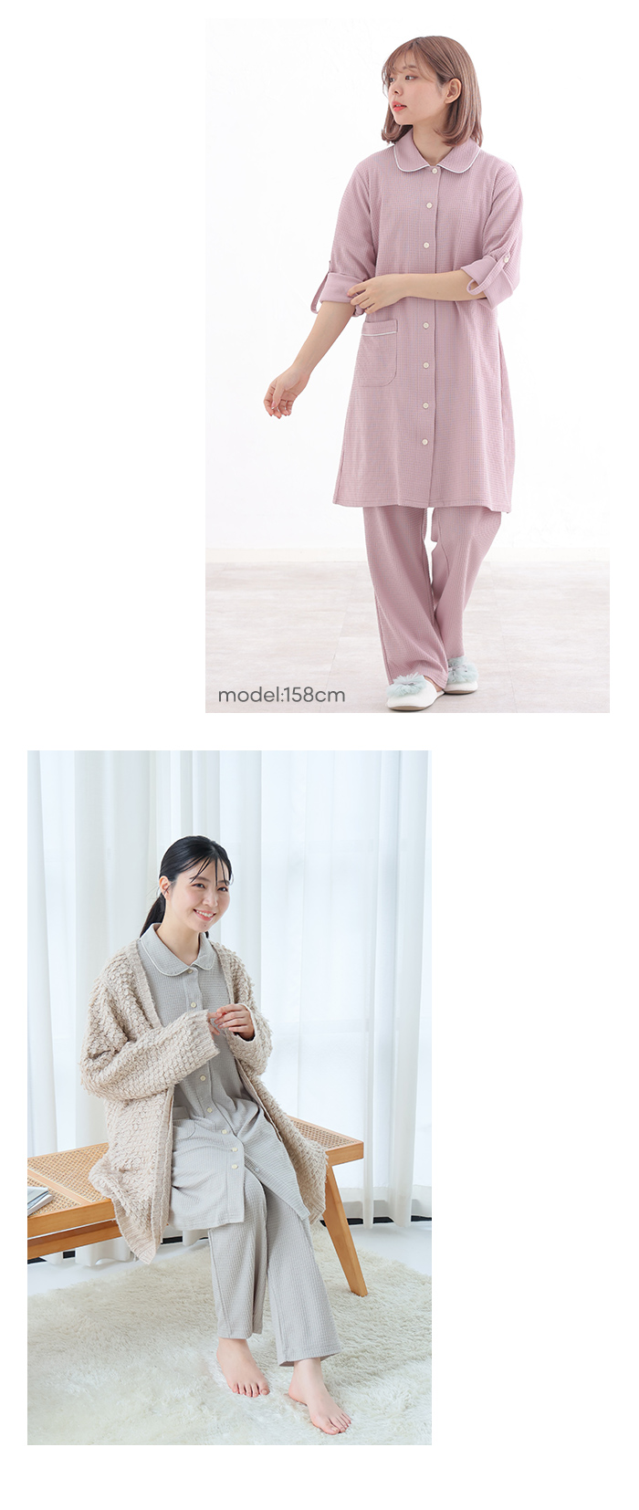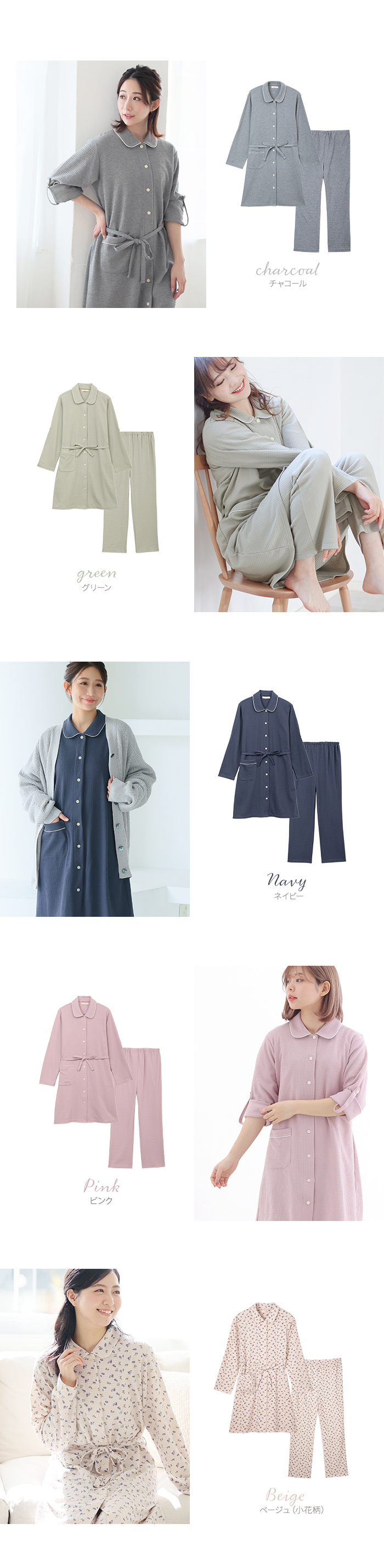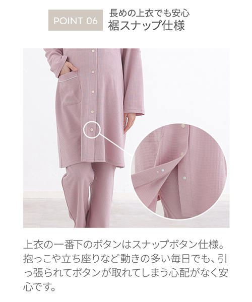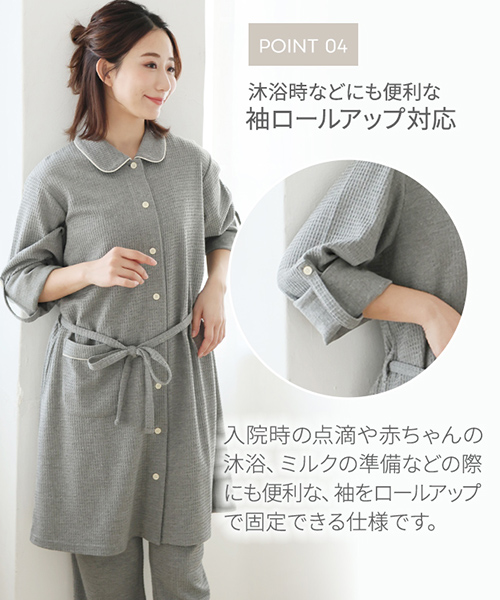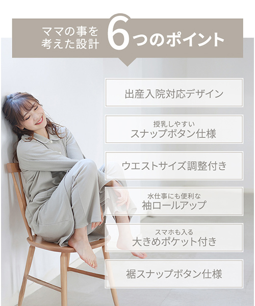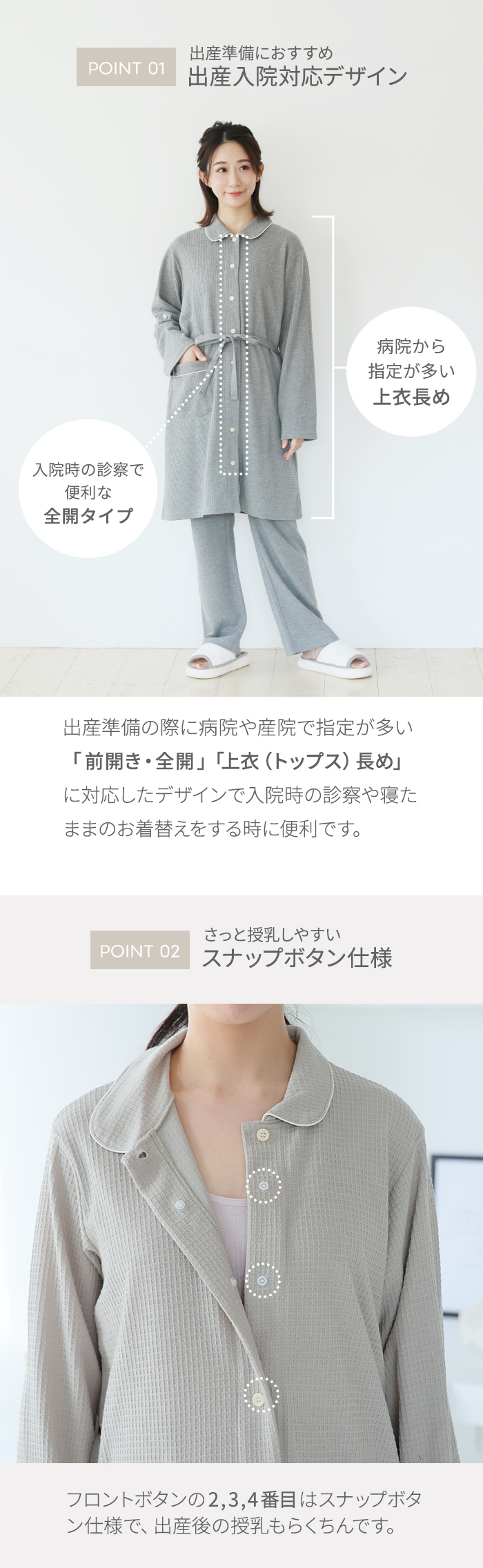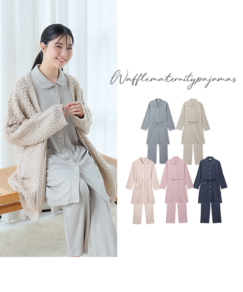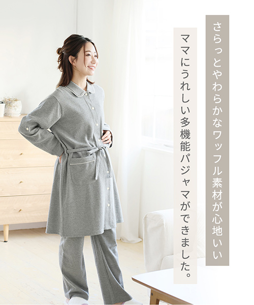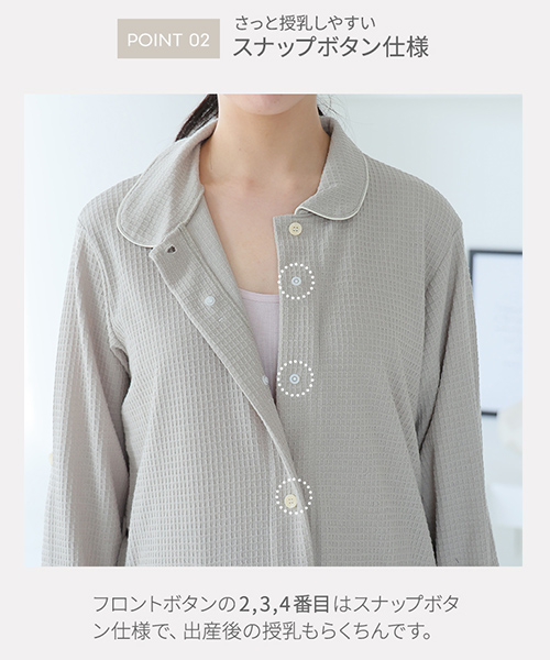 長袖ワッフルパジャマ(産前・産後 フロントスナップタイプ)