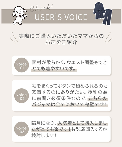 産院で過ごすときも、産後のおやすみタイムも快適に過ごせます。