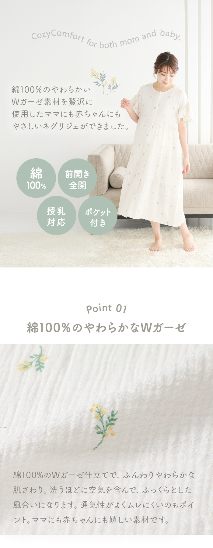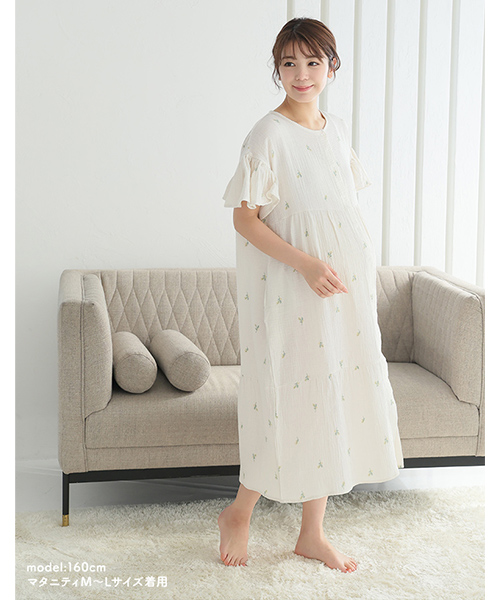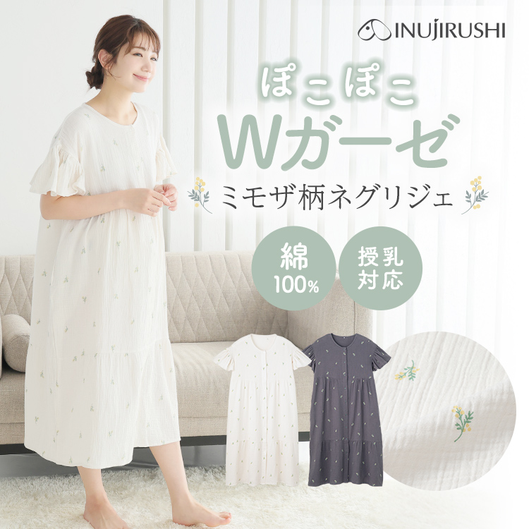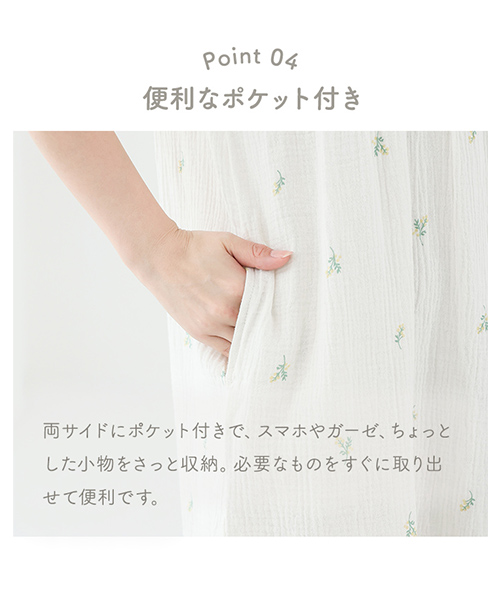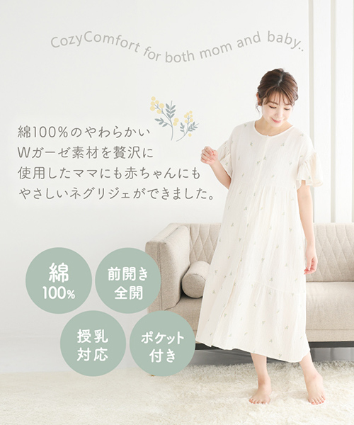 綿100%ダブルガーゼのふんわりやわらかなネグリジェ。