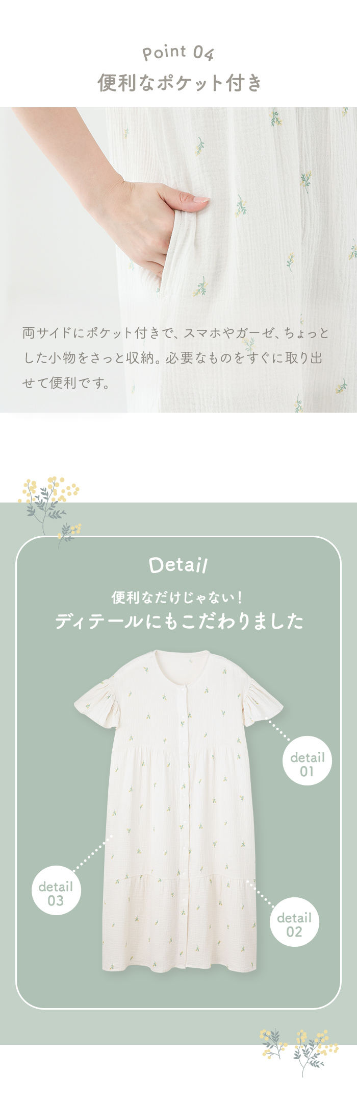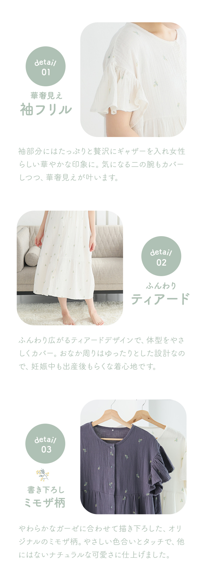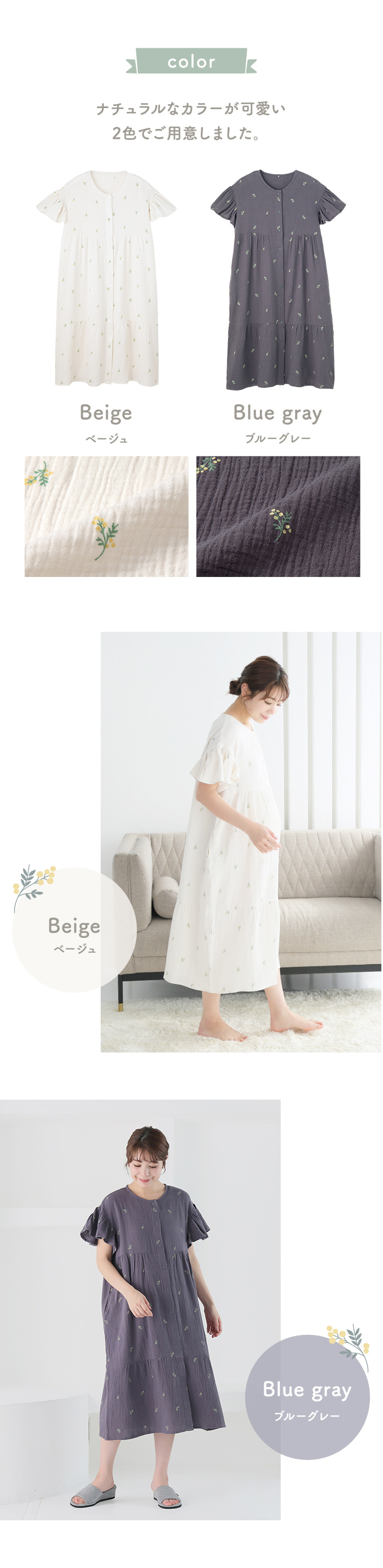 綿100%ダブルガーゼのふんわりやわらかなネグリジェ。