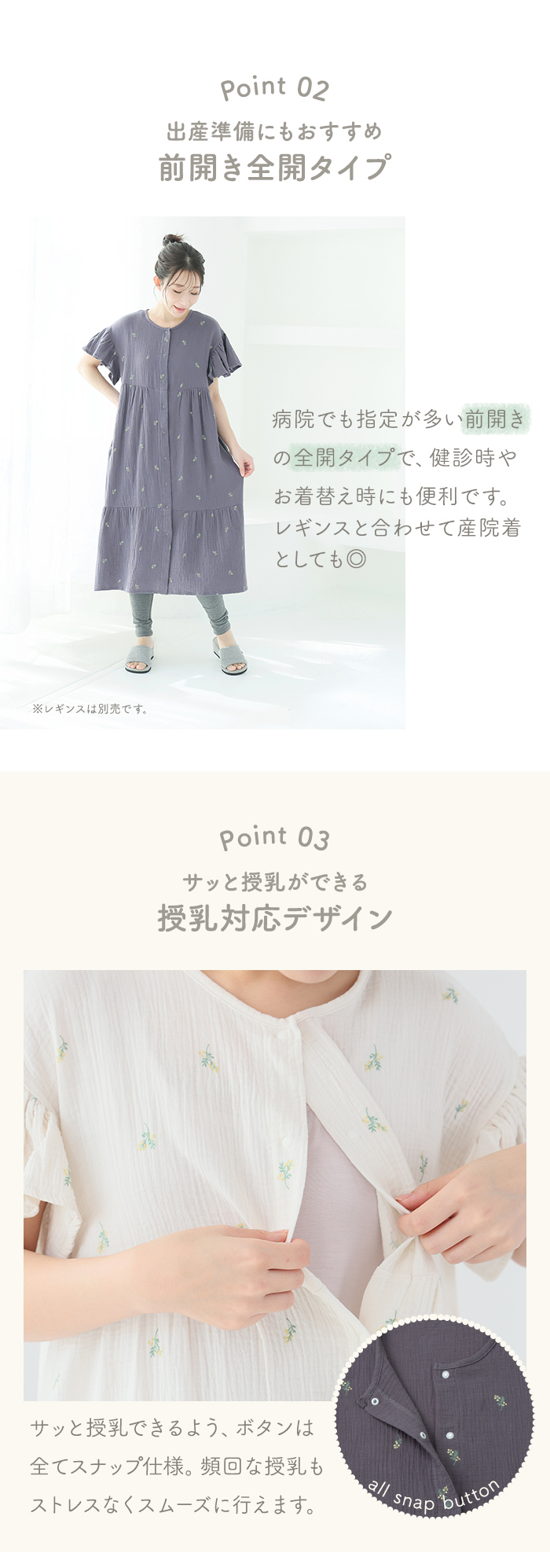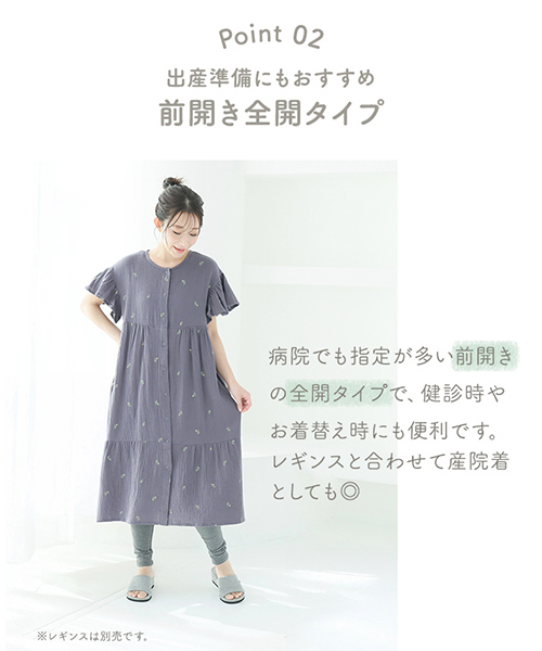 前開き全開タイプで、出産準備や産後の授乳にもぴったり◎