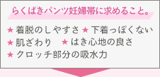 | 妊娠するとまず必要になる妊婦帯。毎日着けるものですから、着脱が楽で、肌触りの良い妊婦帯が欲しいというモニターさんの声から生まれました。特に妊娠すると肌が敏感になって、レースやゴムなどの当たりが気になるという事もあります。妊娠後期になると失禁も気になったり…