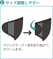 着脱時、洗濯の際、テープが他の衣類にひっかからないようにテープを折り曲げられる機能を付けました。